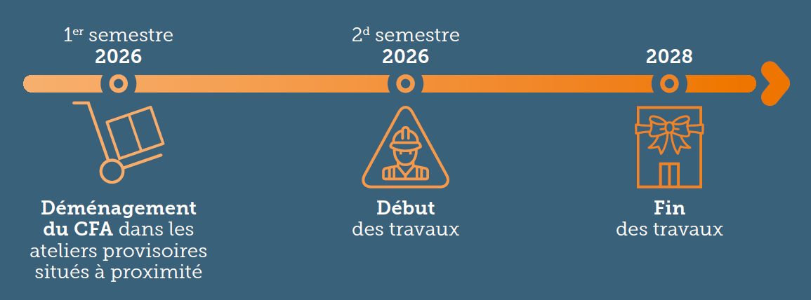 Chaque année dans ce site, ce sont plus de 700 jeunes en alternance qui se forment à la menuiserie, la charpente, la plomberie, la chaudronnerie, la mécanique de maintenance, la métallerie et aux technologies numériques du bâtiment. Cette rénovation vise à transformer et moderniser à la fois les espaces, les équipements et le cadre général du site pour pouvoir offrir aux jeunes apprentis un environnement favorable à leur réussite et à leur épanouissement, dans l’idéal du compagnonnage.